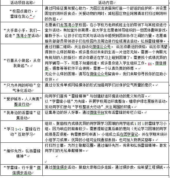 威尼斯886699紧紧围绕“学习雷锋月”积极开展学院建设,组织系列活动,努力把学雷锋活动落实到实处,通过开展各种形式的志愿活动,宣传雷锋同志的志愿精神,并以此为契机,让同学的传统美德和正能量更好的体会到现实行动中,使同学们在学习和生活中加强对凝聚力、主动性、正能量的认识,从而更能推动班级的良好风气和优良的传统美德,培养大学生树立正确的世界观、人生观、价值观。