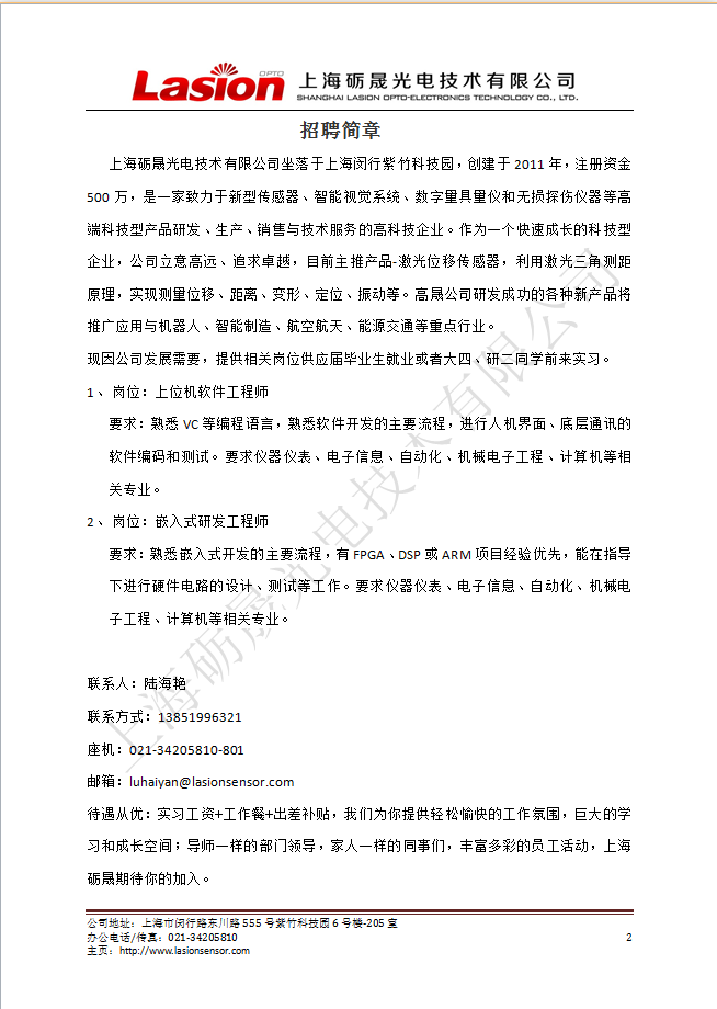 【2016届招聘信息15】上海砺晟光电技术有限公司招聘简章