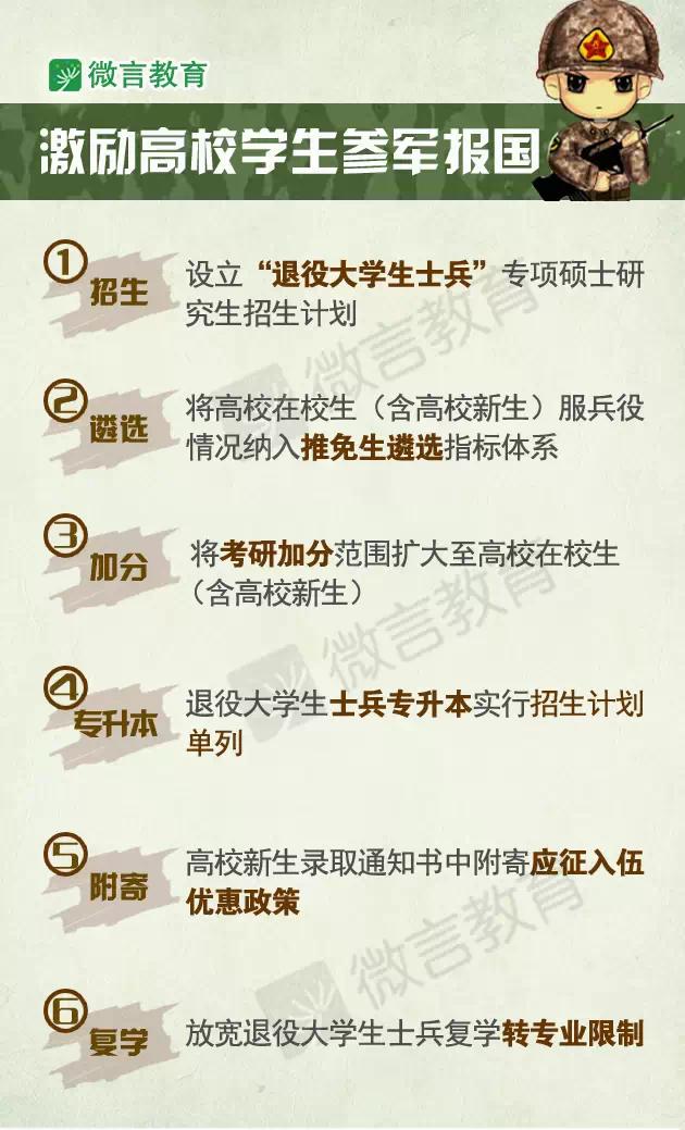 12、在校大学生批准入伍后享受国家学费补偿和助学贷款代偿,最高不超过8000元/年。