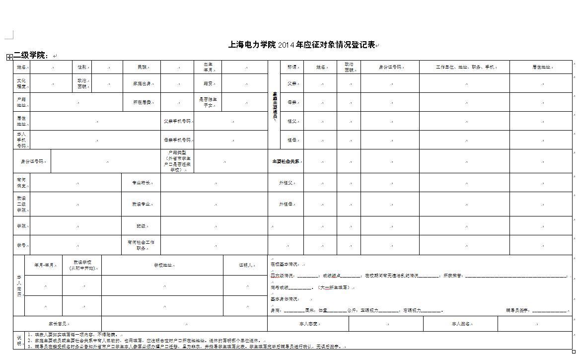 1、联系辅导员报名。填写《上海电力学院2015年征兵报名表》后,将电子版交给辅导员。表格下载地址:http://bwc.web.shiep.edu.cn/detailviewer.asp?categoryid=3&itemid=671&uid=20150518151118000546784396XCYG4ULKS3P2RD5BOM