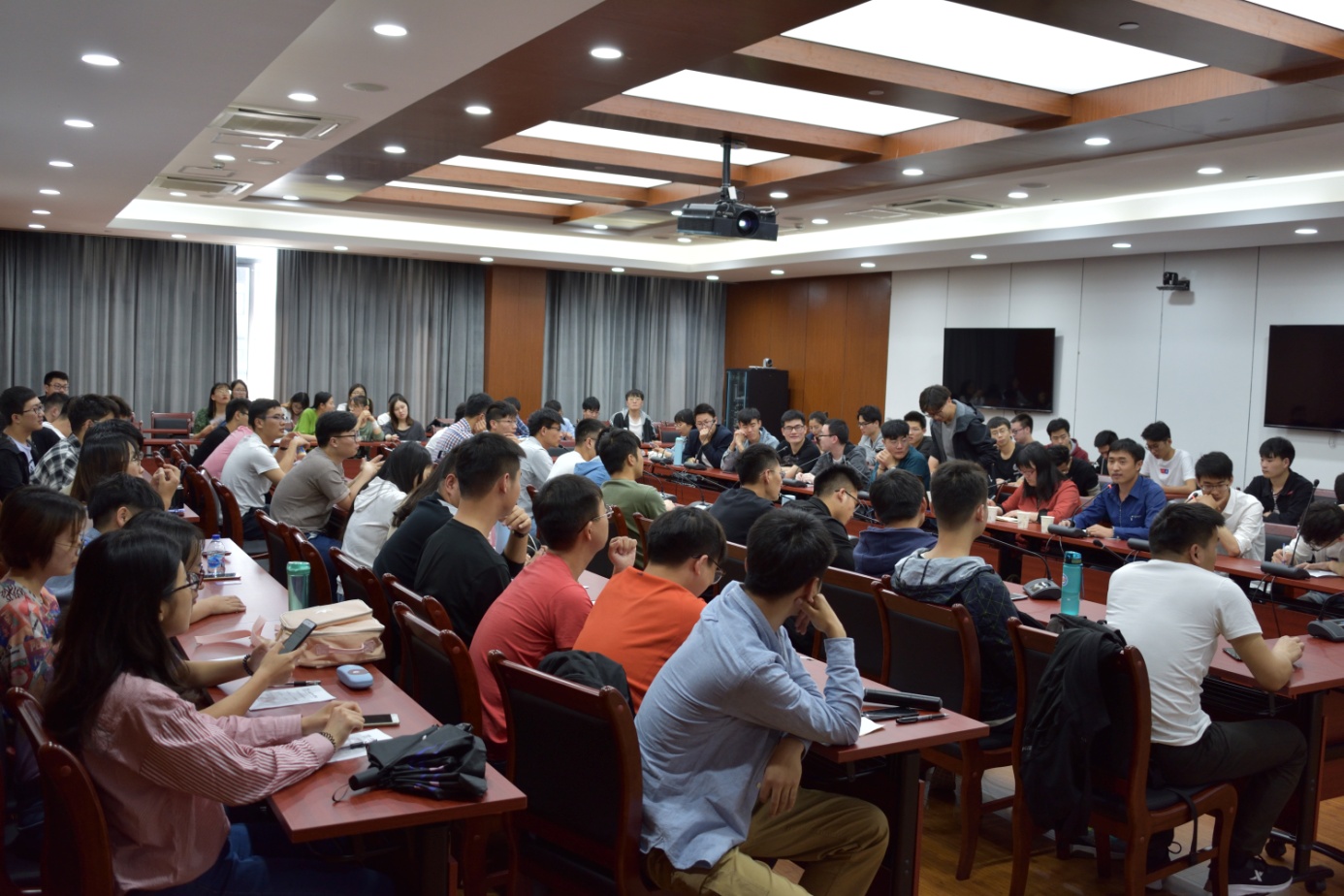接着是同学提问环节,有同学提出去生源地的国家电网的要求,或者对于本科的专业的要求是否那么高,以及学业成绩对于进入电网系统的影响情况,还有同学提出现阶段的任务是什么。三个学长也都详细地给与了解答,研一的同学们非常积极地提问,同时学长们给予了耐心而详细的解答。