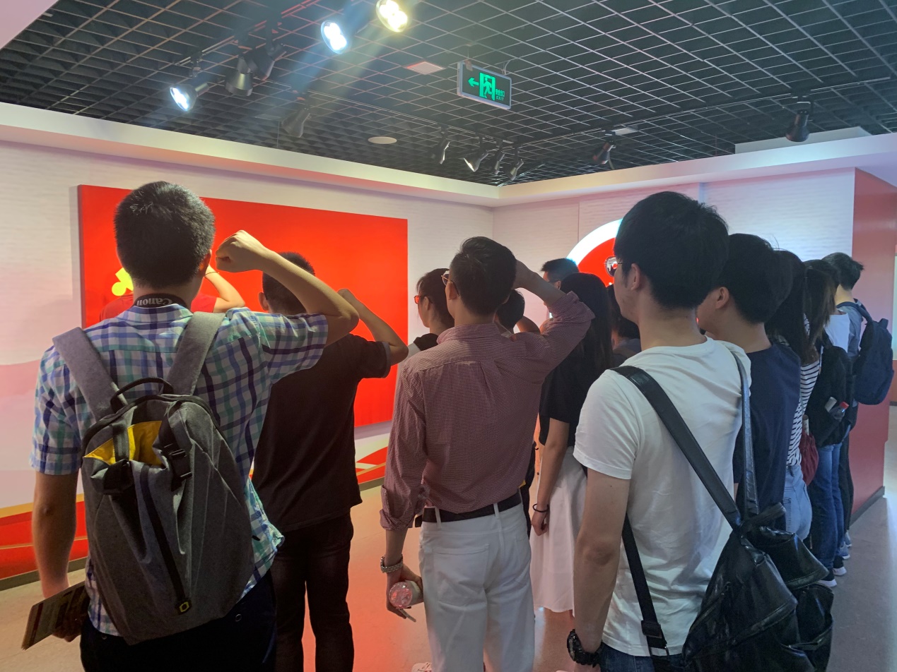 在参观期间,全体党员一同走到党旗面前,重温入党誓词,重温当年入党初心和信念。这正是习近平总书记对全党同志的殷殷嘱咐:不忘初心、继续前进!不忘共产党人的本色初衷、雄心壮志和使命担当,为决胜全面小康、实现中国梦凝聚起必胜信心和磅礴力量!在参观活动结束后,大家通过党史知识竞赛的方式来进一步巩固和加深本次上海市档案馆的参观学习内容。