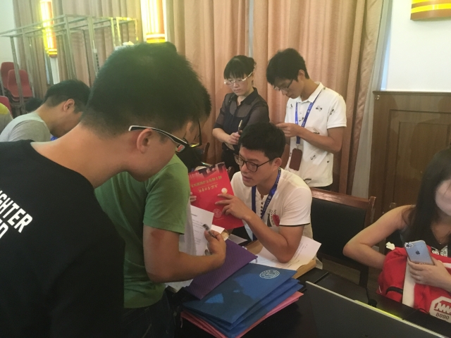上午8点报到刚刚开始,报到的队伍就排起了长龙,志愿者们有条不紊地为新生进行注册登记,发放一卡通,安排他们进行宿舍抽签,详细为他们解答报到流程和注意事项,现场秩序井然有序。在小礼堂门口设置迎新系列展板详细介绍了我院基本情况,发放学生手册,让每位新生通过手册更快熟悉校园,更快地适应校园。下午4点左右,在各位负责迎新工作的老师们与志愿者的配合默契下,所有新生们完成了各项注册手续,顺利地完成报到,最终我院2016级研究生报到新生89人。
